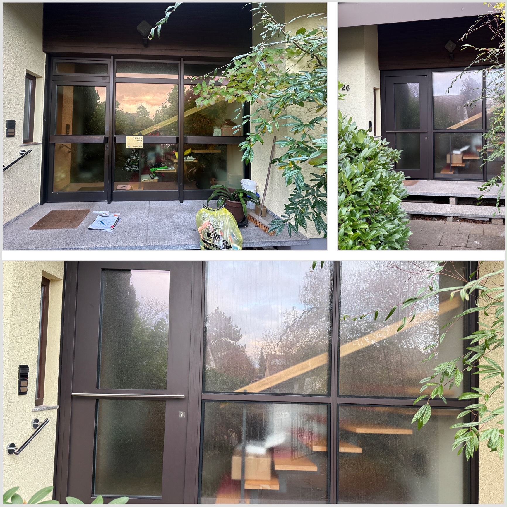 Bei unserem Kunden war es der Wunsch den vorhandenen Windfang weiterhin nutzen zu können, aber eine zeitgemäße neue Optik zu erreichen. Wir durften hier beraten und neue Glasscheiben liefern.