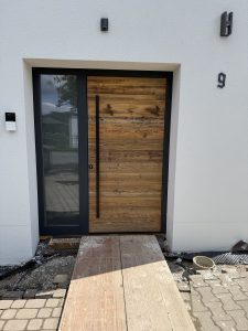 Wir durften diese absolut stilvolle Türe und sehr passend zum Stil des Hauses bei unserem Kunden einbauen: